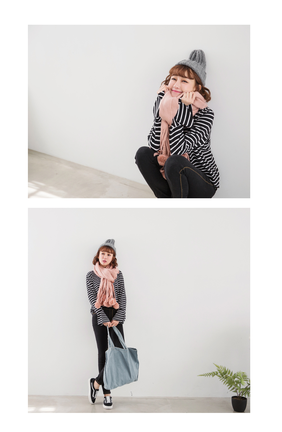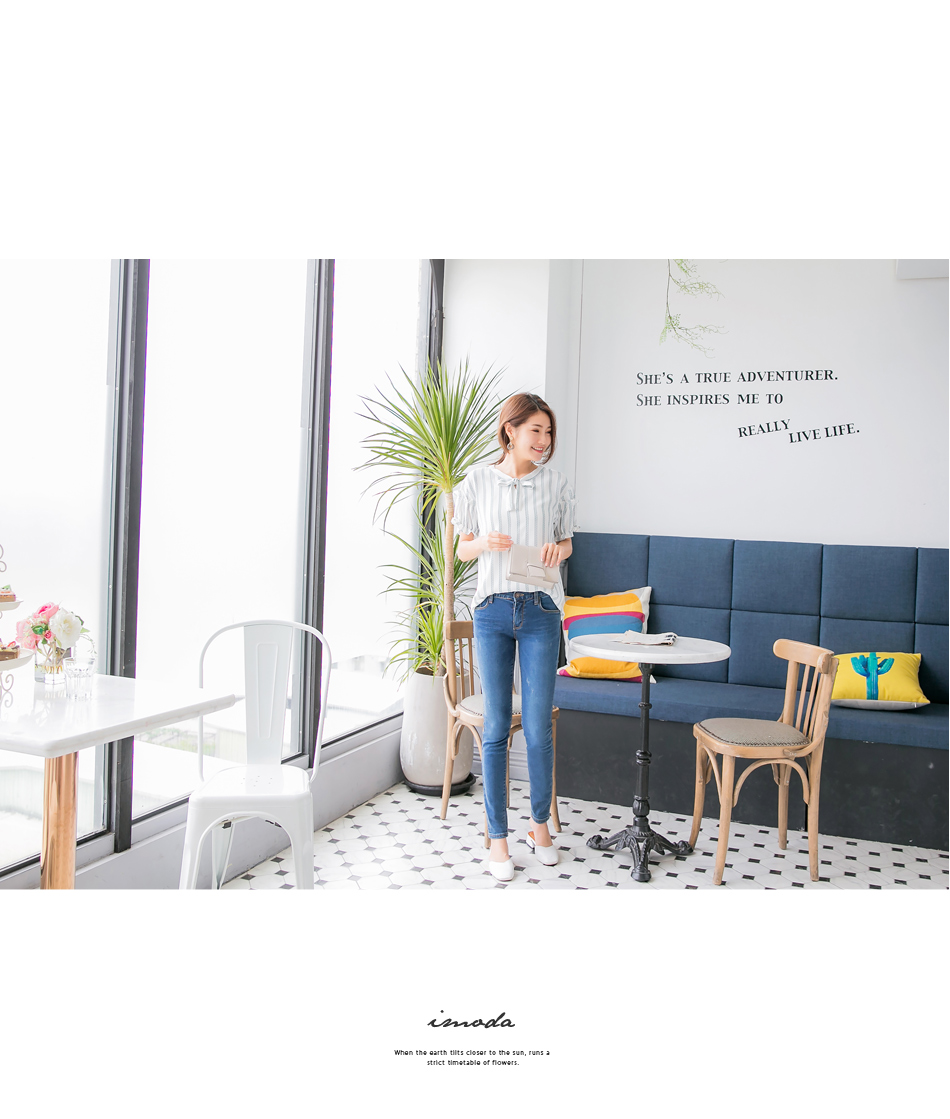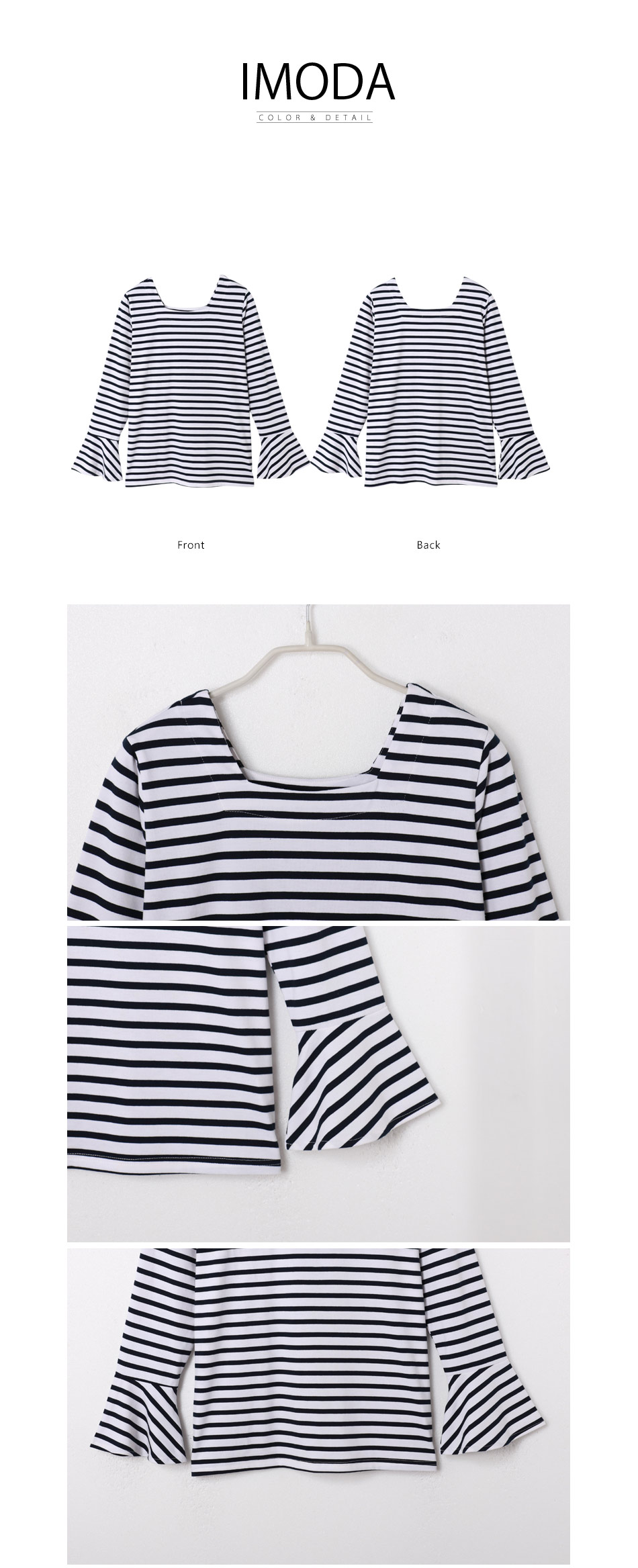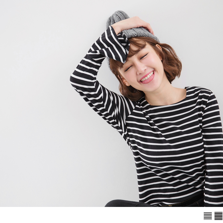 實搭的條紋搭配喇叭袖及船型領的剪裁,打造休閒風的甜美感~