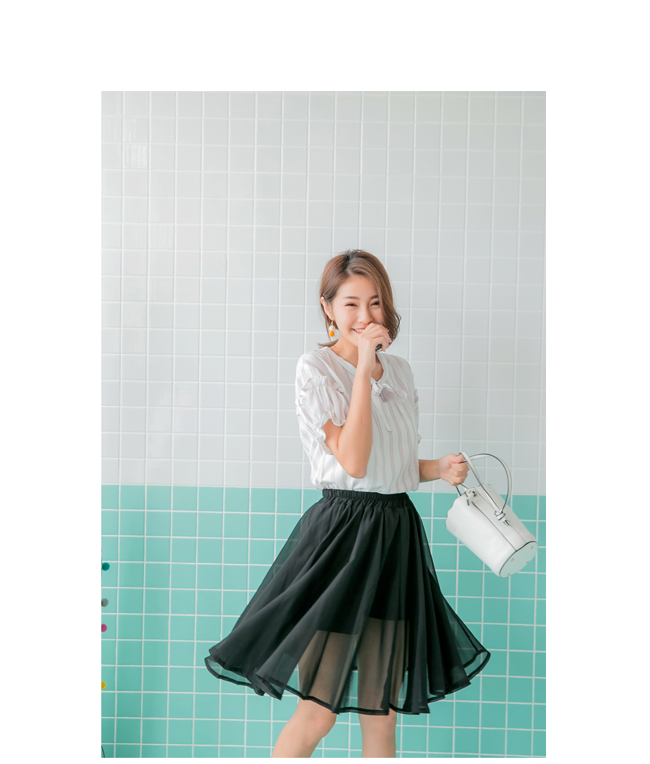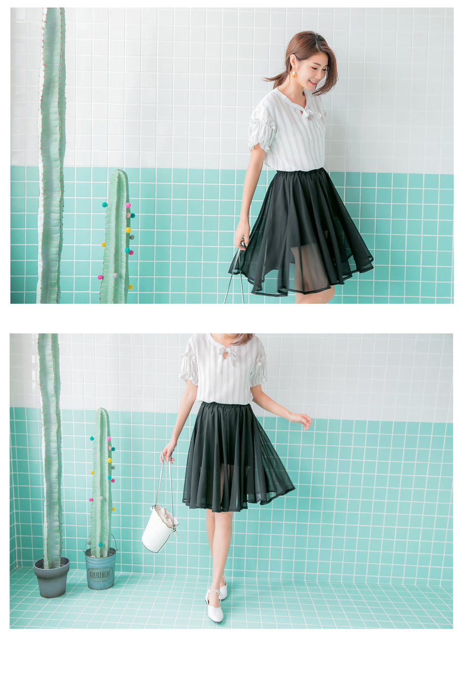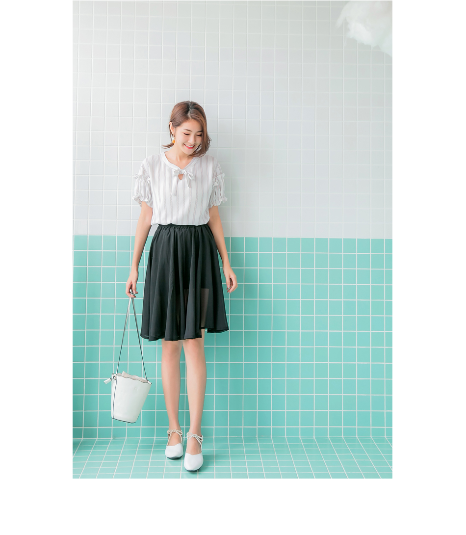 直條紋搭配裡面可愛的紋路, 營造日系女孩的迷人氣息~ 領前綁帶增添知性優雅, 荷葉滾邊的拋袖設計展現時髦甜美的設計感~ ********************** 小提醒:綁帶可調 深色衣物建議單獨 售價:349