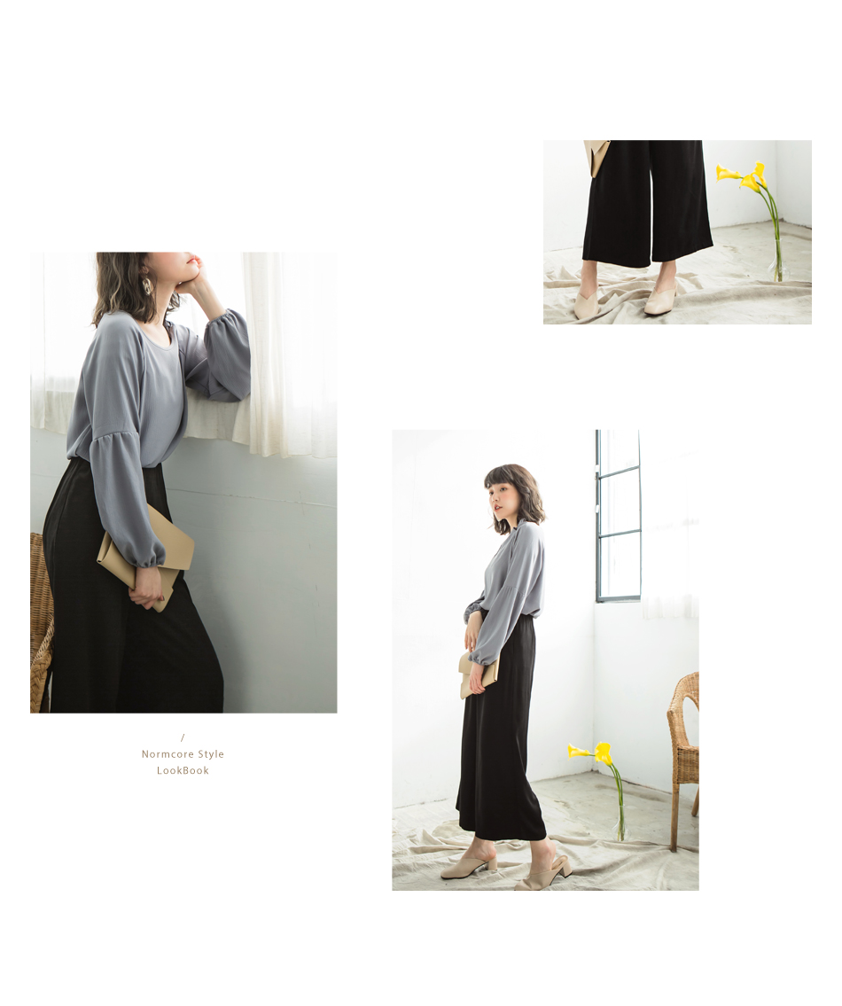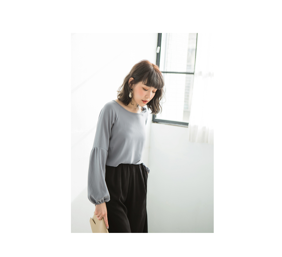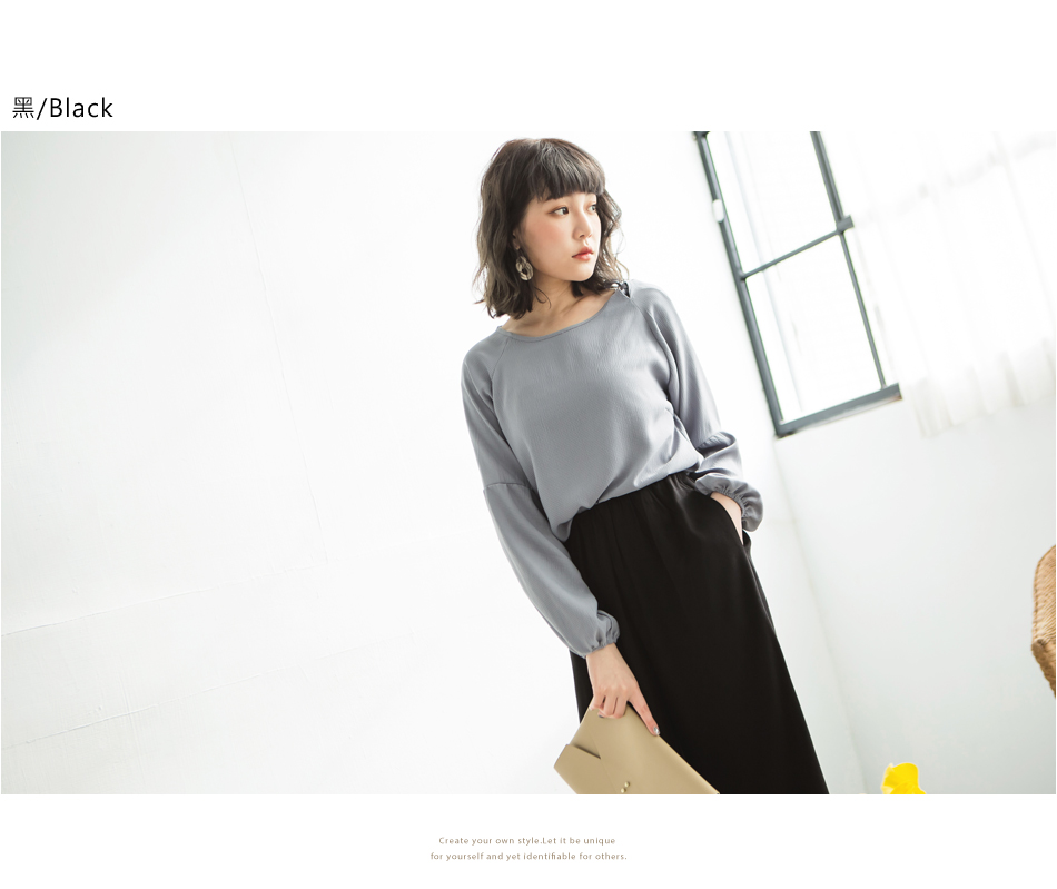 柔和的色調,搭配上領口鏤空線條設計,為素色上衣提升設計質感~