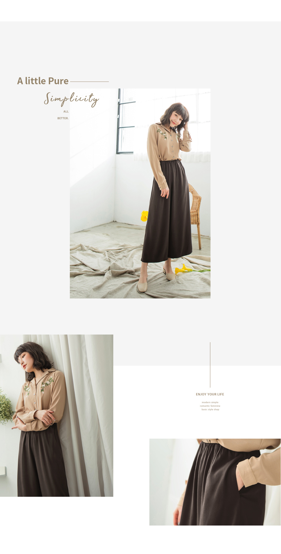 質感柔軟滑順,穿著舒適零負擔,垂墜版型有視覺拉長的效果 簡單搭配就能創造簡約時尚又纖細的穿搭態度 ********************** 小提醒:口袋為真,腰圍鬆緊 深色衣物建議單獨洗滌,以翻面 售價:399